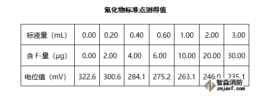 答:現(xiàn)在都不用半對(duì)數(shù)坐標(biāo)紙來畫了,而是用Excel表來做。即先把數(shù)據(jù)輸入,選擇做xy散點(diǎn)圖,x軸為log(F-)濃度,y軸為電位值,在圖標(biāo)上的任意一個(gè)數(shù)據(jù)點(diǎn)上右鍵--添加趨勢線--顯示方程和R2就可以得到校準(zhǔn)曲線的回歸方程y= -bX+ a,再代入樣品電位,便可計(jì)算出樣品濃度。這個(gè)a一般在250-350之間,b應(yīng)該在56~60之間,R2一般應(yīng)在≥|-0.999|。根據(jù)上述氟化物標(biāo)準(zhǔn)點(diǎn)測得值用Excel繪制的校準(zhǔn)曲線如下: