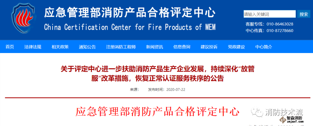 應(yīng)急管理部消防產(chǎn)品合格評(píng)定中心8月1日起恢復(fù)正常認(rèn)證服務(wù)秩序