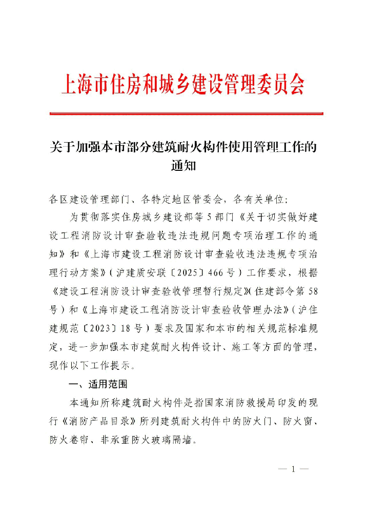 關于加強本市部分建筑耐火構件